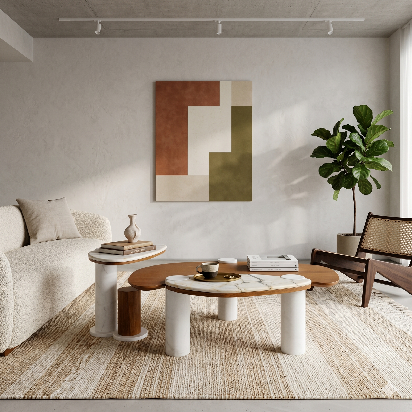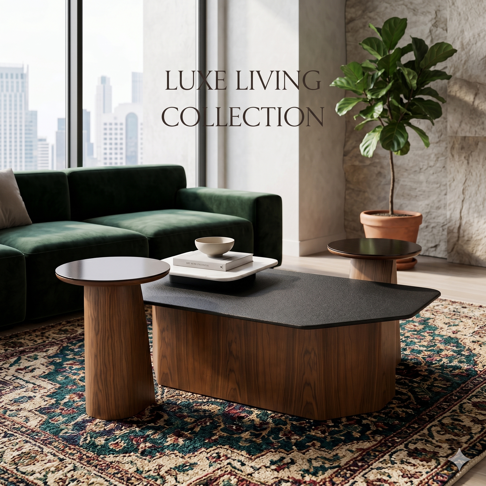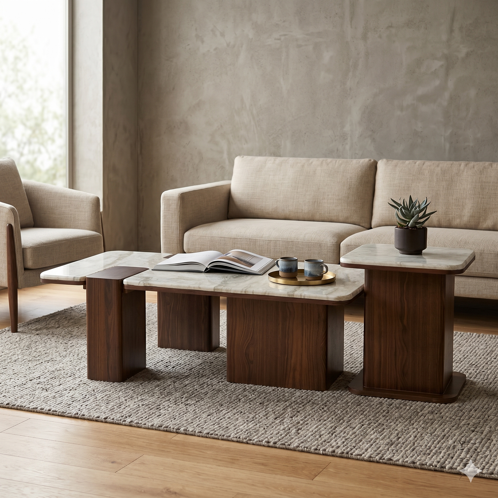 طقم ترابيزات قهوة مودرن (Coffee Table) خشب ورخام
