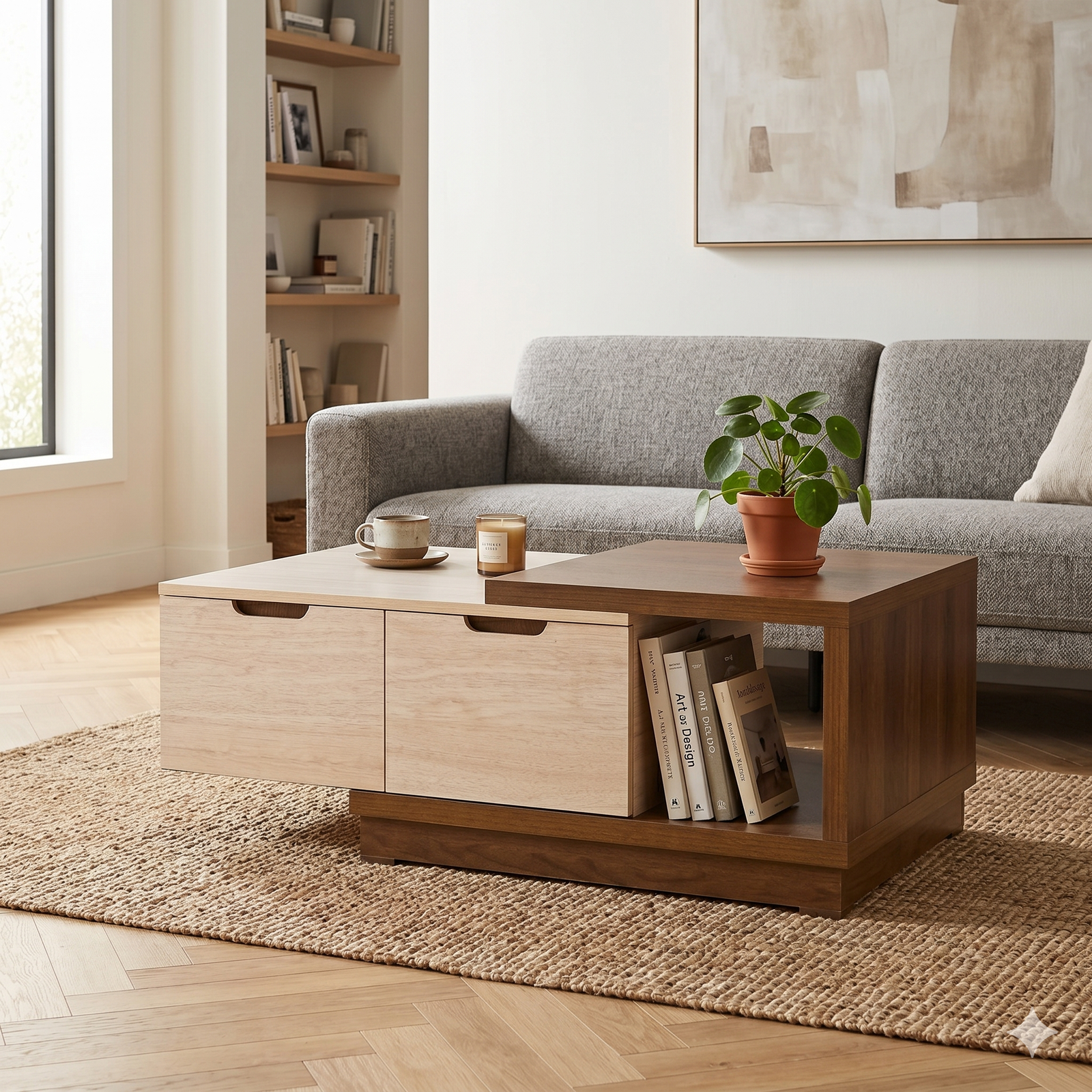 ترابيزة قهوة مودرن بتصميم خشبي مزدوج