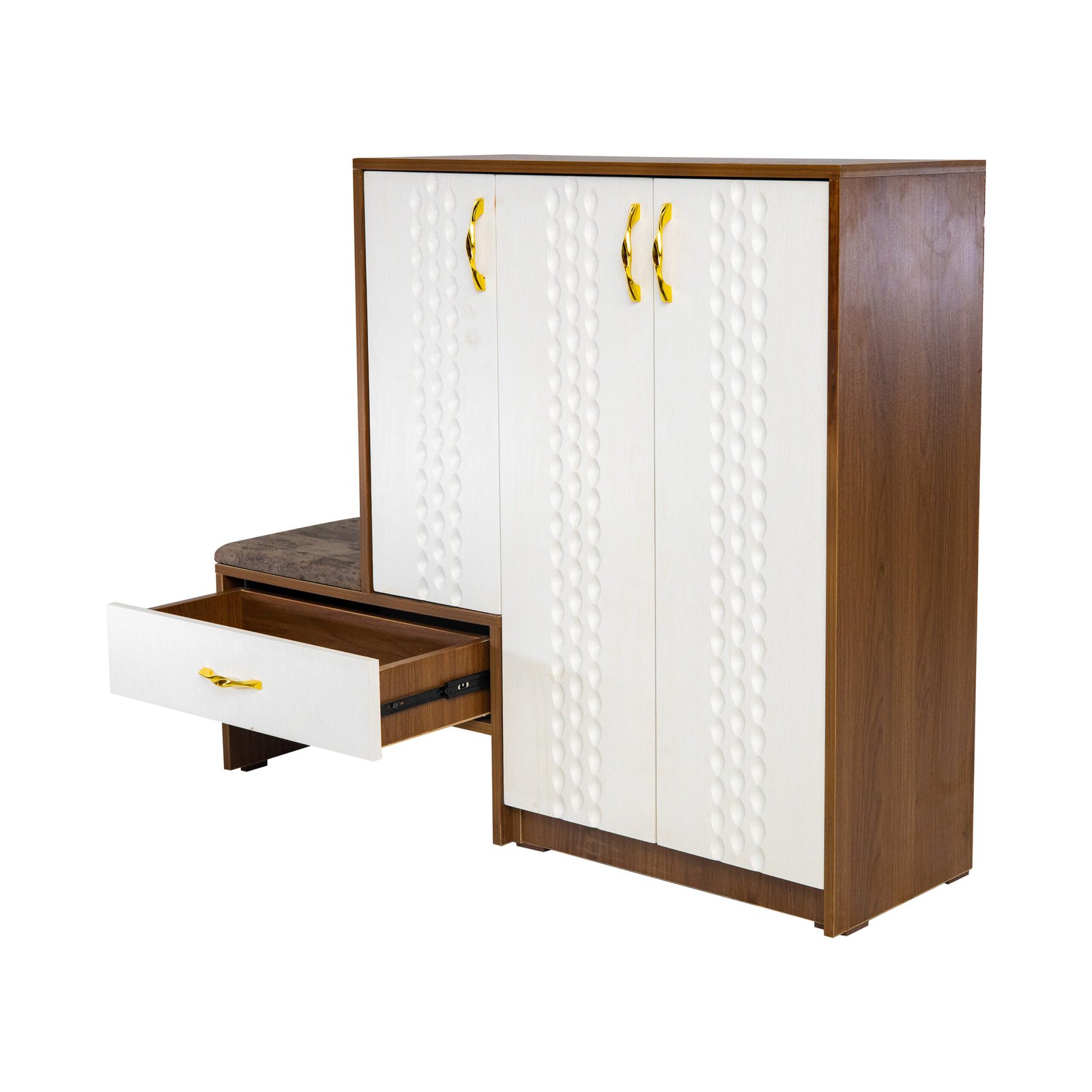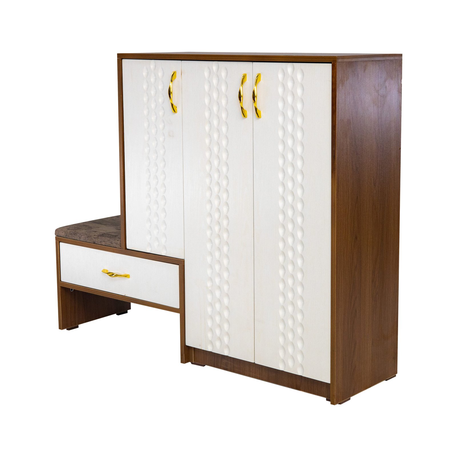 تصميمنا بيتميز بالدمج بين الخشب المتين والتفاصيل العصرية مع مقعد مبطن بأسفنج عالي الكثافة عشان يوفرلك الراحة التامة وأنت بتلبس حذائك، بكل بساطة وأناقة.